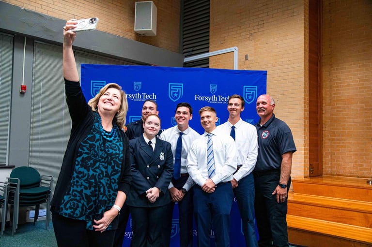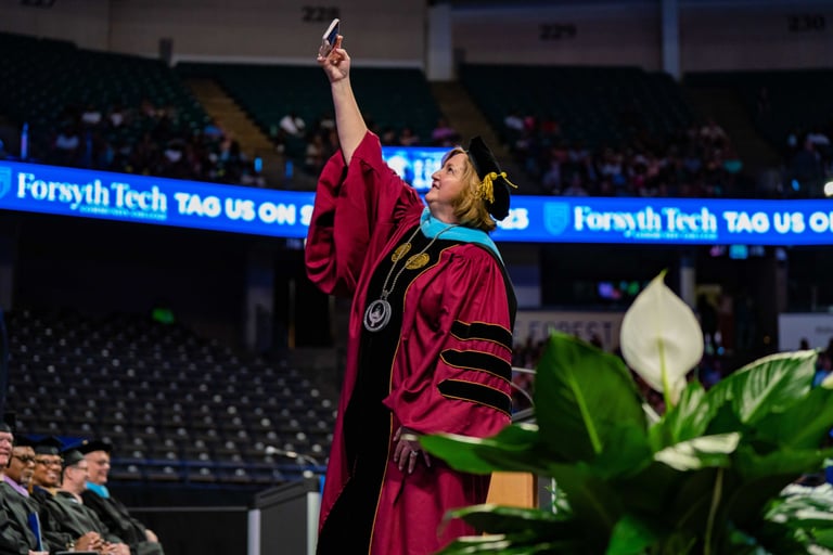 Capturing Moments, Celebrating Success: Join Dr. Spriggs on a visual journey through the vibrant life at Forsyth Tech and beyond. From inspiring student achievements to cherished personal milestones, #SpriggsSelfies is a collage of the moments that showcase education's spirit and transformative power.
